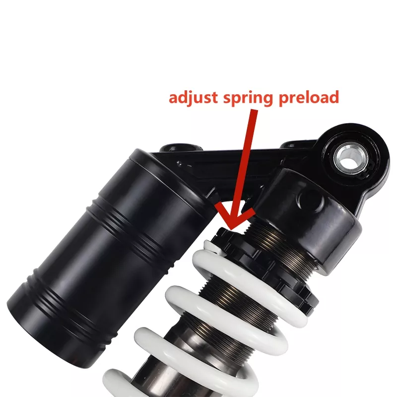 Надворешно воздушно перниче од 280мм мотоцикл Амортибер има прилагодливо пролетно преоптоварување, овозможувајќи им на возачите да се модифицираат - прилагодете се да ја отежнат пролетта, прилагодете се за да ја направите пролетта помек
